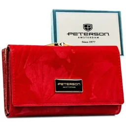 Portfel Damski Skórzany Peterson Klamra I Klapka Skóra Naturalna RFID PTN PS-108 CZERWONY 14 x 9 x 3 [cm] Klasyczny damski portfel wykonany z najwyższej jakości skóry naturalnej . Skóra tego rodzaju bardzo często wykorzystywana jest do produkcji tapicerki skórzanej, co dobitnie świadczy o jej niekwestionowanej wytrzymałości. Portfel wykonany starannie i perfekcyjnie w najdrobniejszych szczegółach. Model ten jest jednym z najlepszych i najczęściej używanych portfeli damskich. Jego rozmiary są dobrane w taki sposób, aby można było swobodnie ulokować zarówno banknoty jak i powszechnie używane dokumenty.
