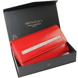 Portfel Damski Skórzany Rovicky (PL) Średni Klamra Z Klapką Wewnątrz Skóra Naturalna CPR 047 CZERWONY 18,5 x 11 x 3,5 [cm] Damski portfel wykonany z najwyższej jakości skóry naturalnej . Skóra tego rodzaju bardzo często wykorzystywana jest do produkcji tapicerki skórzanej, co dobitnie świadczy o jej niekwestionowanej wytrzymałości. Portfel wykonany starannie i perfekcyjnie w najdrobniejszych szczegółach. Rozbudowany i pojemny model. Jego rozmiary są dobrane w taki sposób, aby można było swobodnie ulokować zarówno banknoty jak i powszechnie używane dokumenty.
