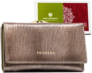 Delikatne logo Peterson® w złotej barwie, umieszczone na przodzie, dyskretnie podkreśla luksusowy charakter portfela.