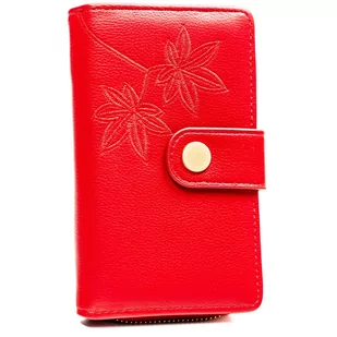 Portfel damski w kwiaty na karty na dowód rejestracyjny skóra ekologiczna, Cavaldi, czerwony