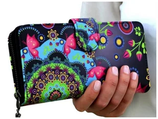 PORTFEL DAMSKI w Kwiaty PODWÓJNY na zamek organizer duży