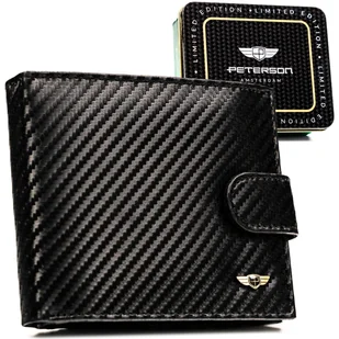 Portfel męski Peterson skórzany carbon z RFID zestaw prezentowy na święta Portfel męski skórzany Peterson®️ Carbon + brelok Poznaj zestaw, który łączy świetny styl z praktycznym zastosowaniem. Portfel wykonany z naturalnej skóry, pokrytej carbonową strukturą, wyróżnia się wytrzymałością i efektownym designem. To propozycja dla mężczyzn, którzy lubią klasykę, ale w nowoczesnym wydaniu. Co sprawia, że warto go mieć? #️⃣ Renomowana marka PETERSON® – rozpoznawalna, ceniona i doceniana za jakość wykonania. #️⃣ Skóra naturalna o strukturze carbonu – jakościowa i wyjątkowo męska.