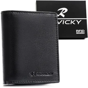 Portfel męski pionowy ROVICKY skórzany mały bez zapięcia rozbudowany na karty ochrona RFID czarny