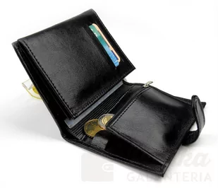 Czarny PODŁUŻNY Portfel Męski na SUWAK Bilon ŚREDNI Młodzieżowy SKÓRZANY hq