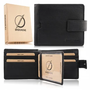 Portfel Męski Skórzany Czarny Brodrene G-109 Poziomy na Patkę Rfid Secure