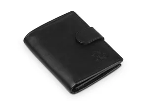 gładka, naturalna skóra licowa uszyty z dbałością o najmniejszy detal zamykany paskiem z zatrzaskiem wytłoczone logo na froncie portfela okucia w srebrnym kolorze ochrona kart RFID PROTECTION kieszeń na banknoty piętnaście kiszonek na karty lub dokumenty, w tym dwie z okienkiem pasek z zatrzaskiem zabezpieczający wewnętrzne kieszenie dodatkowa, wewnętrzna kieszonka zamykana na suwak miła w dotyku, wewnętrzna podszewka kieszeń na bilon, zamykana na zatrzask
