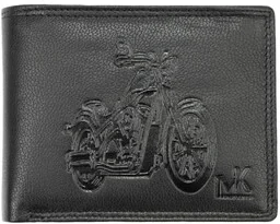 Portfel Męski Skórzany MONEY KEPPER Duży Poziomy Bez Zapięcia Dwa Skrzydełka TCC5600-4 RFID ,,MOTOCYKL,, CZARNY 13 x 10 x 2 [cm] Skórzany portfel męski wykonany ze skóry naturalnej wysokiej jakości. Jest ona miła, miękka i ciepła w dotyku. Interesująca tekstura skóry. Wzór ten to jeden z najczęściej używanych modeli portfeli męskich. Klasyczna stylistyka, przyjemny, naturalny skórzany zapach.