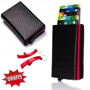 Portfel Męski Skórzany Na Karty Rfid Aluminiowy Czarno Czerwony Karbon