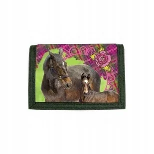 PORTFEL NA RZEP DLA DZIEWCZYNKI z motywem koni. zapinany na rzep, wymiary 11,5 x 8,5 cm