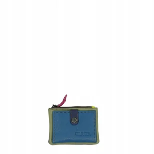 Mały skórzany portfel damski PETERSON niebieska portmonetka na zatrzask suwak i bigiel rozbudowany na karty i bilon pudełko na prezent ochrona RFID ..