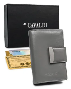 Portfel skórzany damski Cavaldi pionowa portmonetka na suwak z ochroną kart RFID, szary