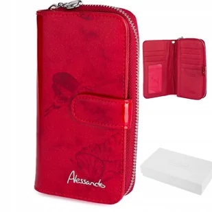 Wysokiej jakości, duży, damski portfel wykonany z miękkiej, lakierowanej skóry naturalnej, marki Alessandro Paoli. Model 67-44 w kolorze czerwonym z wzorem w...