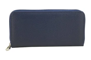 Specjalna wkładka uniemożliwia odczyt karty. Portfel skórzany z zabezpieczeniem RFID jest zasuwany, posiada również praktyczną zasuwaną kieszeń na zewnątrz umożliwiającą szybki dostęp do biletów lub listy zakupów. Wymiary portfela: wysokość 10cm, szerokość 20cm, szerokość dna 2cm Kolor portfela: granatowy