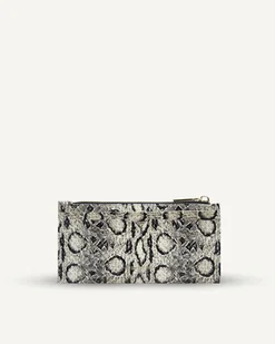 Portfel V biało czarna skóra tłoczona na wzór węża z hematytem