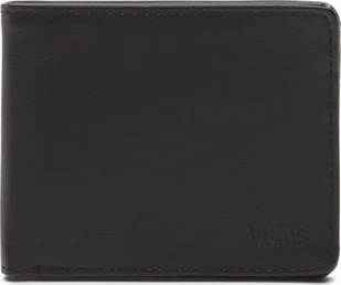 Portfel męski marki Vans, model Drop V. Portfel bez zapięcia oferuje wewnętrzne przegródki na banknoty, dokumenty, karty kredytowe i kieszeń zapinaną na zamek (na drobne monety). Materiał to 100% poliuretan, a wymiary to około 11,2 x 9 x 2 cm.