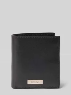 Portfel męski CK Calvin Klein;Niezapinana przegródka główna ;Aplikacja z metką;Model ‘PLAQUE’;Przegródki na karty i przegródki na banknoty;Przegródka na monety z zatrzaskiem