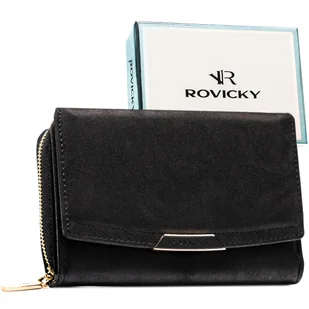 Portmonetka damska na zatrzask i suwak ROVICKY mały portfel karty gotówka ochrona RFID elegancki czarny