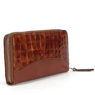 Portmonetka skóra naturalna bursztynowy brąz krokodyl Portfel skórzany