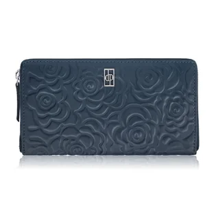 POZIOMY PORTFEL DAMSKI SKÓRZANY GRANATOWY W KWIATY Z METALOWYM LOGO PAOLO PERUZZI AL-13-NV