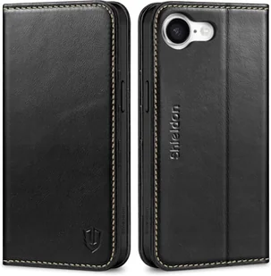 Shieldon naturalne etui skórzane iPhone 16e portfel Rfid z klapką czarne