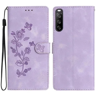 Skórzane etui do Sony Xperia 10 V, stojak na portfel odporny na odciski palców Kwiatowy pokrowiec na telefon -dd Fioletowy