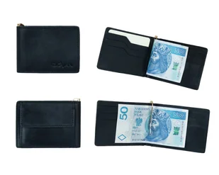 dowód osobisty, prawo jazdy, karty płatnicze, wizytówki. Do banknotów przeznaczony jest klips znajdujący się w środku portfela. Dzięki wbudowanemu klipsowi na pieniądze wykonanemu ze stali nierdzewnej można bezpiecznie przechowywać banknoty. Złoty kolor dodaje klipsowi eleganckiego charakteru. Na zewnątrz portfela znajduje się kieszonka na monety zapinana na zatrzask.