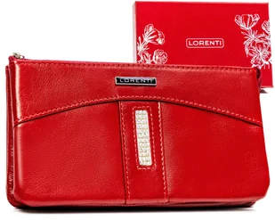 Skórzany portfel damski Lorenti na suwak pojemna portmonetka na karty z ochroną RFID, czerwony