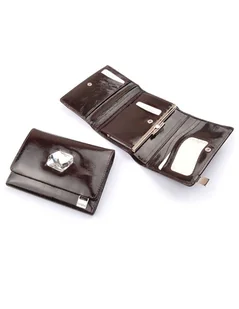 Skórzany portfel damski Mia z dużym kryształem - Swarovski Brązowy