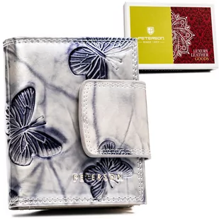 Skórzany portfel damski w motyle Peterson, srebrny Portfel damski skórzany z wzorem motyli PETERSONⓇ #️⃣ Polska marka | Produkt znanej i cenionej polskiej ma...