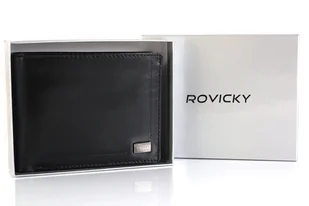 Skórzany portfel męski z ochroną kart RFID Protect — Rovicky produkt polskiej marki Rovicky®, odszyty z wysokiej jakości, skóry naturalnej bydlęcej; prócz sk...