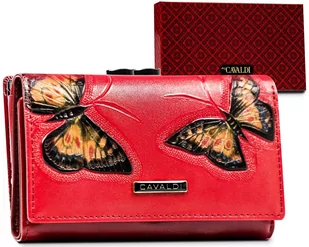 Średni portfel damski ze skóry ekologicznej w motyle Cavaldi, czerwony