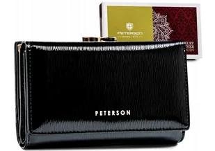 Portfel damski lakierowany PETERSON rfid stop średniej wielkości na zatrzask lakierowany prążkowany skóra naturalna i ekologiczna pudełko prezentowe