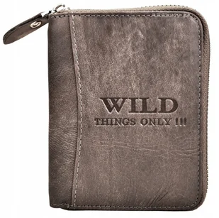 G4-222 – Pionowy SKÓRZANY portfel męski na suwak WILD THINGS ONLY !!! – kolor SZARY. Portfel wykonany z wysokiej jakości, pachnącej skóry naturalnej. 2 x Pra...