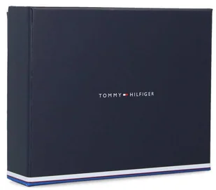 TOMMY HILFIGER Portfel Męski Tommy Hilfiger Klasyczny portfel męski marki TOMMY HILFIGER został wykonany z wysokiej jakości skóry naturalnej o wytłaczanej fakturze, z przodu portfela ozdobne logo. Portfel jest cienki, choć swobodnie pomieści przydatne na co dzień karty, wizytówki, banknoty i monety. Produkt został wyposażony w cztery miejsca na karty oraz dwie funkcjonalne przegrody na banknoty czy paragony. Miejsce na bilon na zatrzask. Portfel został zapakowany w dedykowane, eleganckie pudełko którego górna pokrywa ozdobiona jest napisem z logo marki.