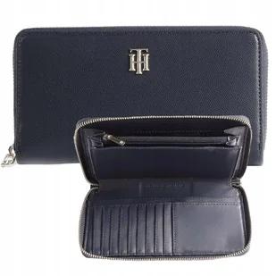 Tommy Hilifger Duży Damski Portfel Skórzany Granatowy Elegancka Portmonetka