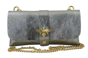 Torebka wizytowa metalizowana została wykonana z naturalnej skóry licowej. Uniwersalny fason urozmaicony złotymi dodatkami oraz ozdobnie plecioną skórą z obu stron torebki, rozmiarowo idealny aby pomieścić niezbędne rzeczy - telefon, portfel oraz drobne kosmetyki. Nowoczesny design oraz wysokiej jakości skóra naturalna wyróżniają ten model torebki, która będzie idealnym uzupełnieniem stylizacji na spotkanie z przyjaciółmi. Wnętrze torebki: modne torebki wizytowe metalizowane są jednokomorowe, surowo wykończone.