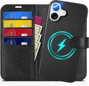 Tucch etui skórzane z klapką do iPhone 16 portfel Rfid 2w1 czarny