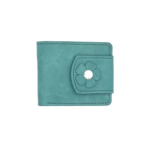 Turkusowy damski portfel skórzany ręcznie uszyty na bilon.