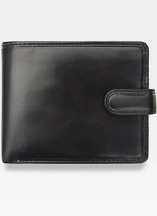Duży portfel męski na suwak skóra naturalna ochrona RFID Protect Peterson, czarny czerwony