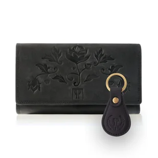 ZESTAW PREZENTOWY ZUP-96-BL SKÓRZANY PORTFEL DAMSKI T-05-BL I BRELOK T-85-HBL