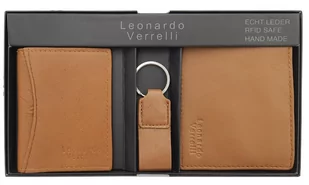 Zestaw upominkowy męski elegancki portfel brelok etui skórzany
