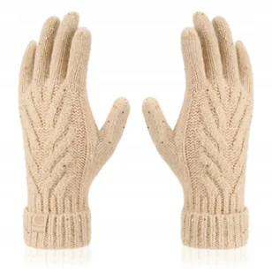 Betlewski Rękawiczki damskie zimowe beżowe stylowe miękkie chronią grzeją WINTER BETLEWSKI® – stylowe rękawiczki damskie z połyskiem