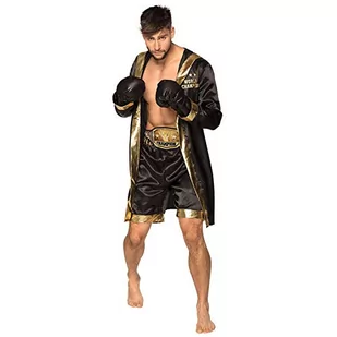 Boland 84555 – kostium boksera, płaszcz, rękawiczki, spodnie, pasek, dla mężczyzn, złoto-czarny, bokserski, mistrz świata, kostium, karnawał, impreza tematyczna