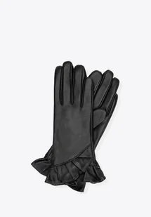 Damskie rękawiczki skórzane z dekoracyjną falbaną czarne