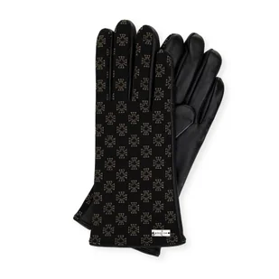 Dopasowane rękawiczki skórzane Te damskie rękawiczki z najwyższej jakości skóry naturalnej i poliestru to doskonałe połączenie elegancji i funkcjonalności. Zewnętrzna strona ozdobiona subtelnym monogramem producenta stanowi stylowe nawiązanie do luksusu, który idealnie uzupełni każdą stylizację. Dzięki rozcięciu na wewnętrznej stronie rękawiczki łatwo się zakłada i zdejmuje, co czyni je praktycznym wyborem na co dzień. Dodatkowo małe logo producenta dyskretnie umieszczone wewnątrz podkreśla wyjątkowy charakter produktu. Dla kogo? Dla kobiet, które cenią elegancję i wygodę.