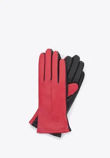 Damskie rękawiczki z dwóch kolorów skóry czerwono-czarne L