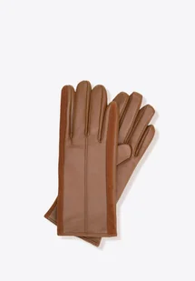 Damskie rękawiczki z naturalnej skóry owczej gładkie brązowe