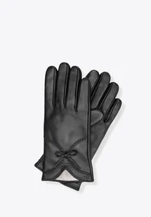 Materiał: Skóra naturalna owcza zapewnia miękkość, elastyczność i trwałość. Ocieplenie: Wnętrze z mieszanki wełny i nylonu gwarantuje przyjemne ciepło nawet w mroźne dni. Design: Dekoracyjne wycięcie i kokardki na zewnętrznej stronie dodają subtelnego uroku. Detale: Tłoczone logo producenta od wewnętrznej strony to elegancki, nienachalny akcent.