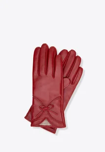 Damskie rękawiczki z naturalnej skóry owczej ocieplane czerwone