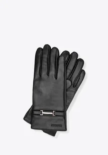 Damskie rękawiczki ze skóry naturalnej z ozdobnym paskiem czarne